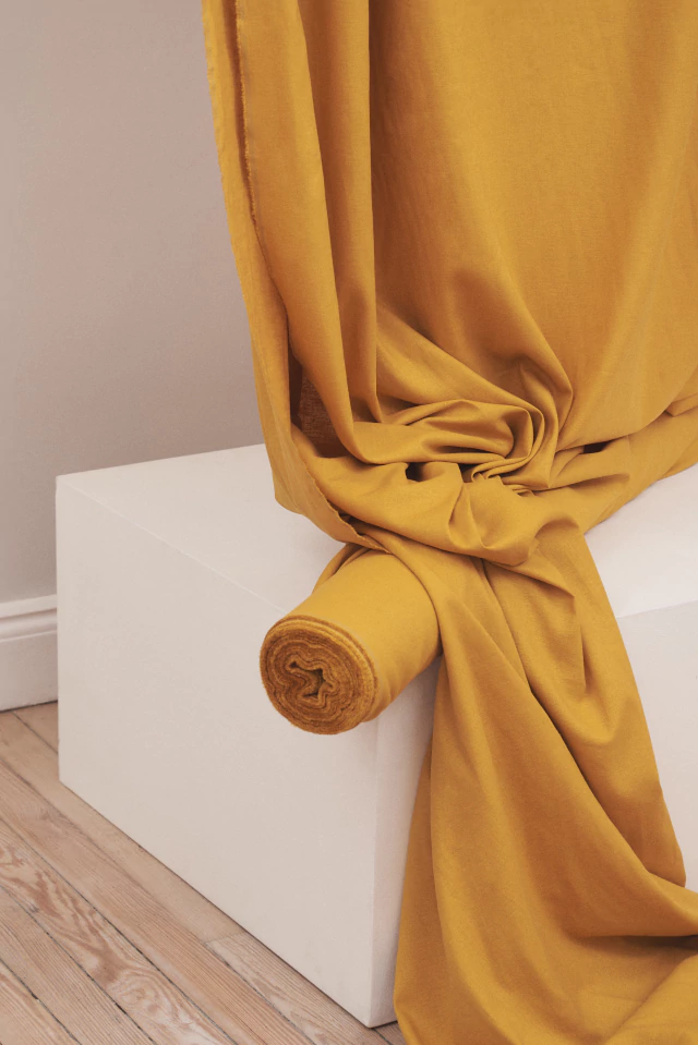 Ideal para prendas de verano y entretiempo, aporta naturalidad y sofisticación a camisas, blusas, pantalones amplios, vestidos y faldas con siluetas relajadas o estructuradas. Su peso medio y su composición lo convierten en un imprescindible para quienes buscan elegancia informal y confort.